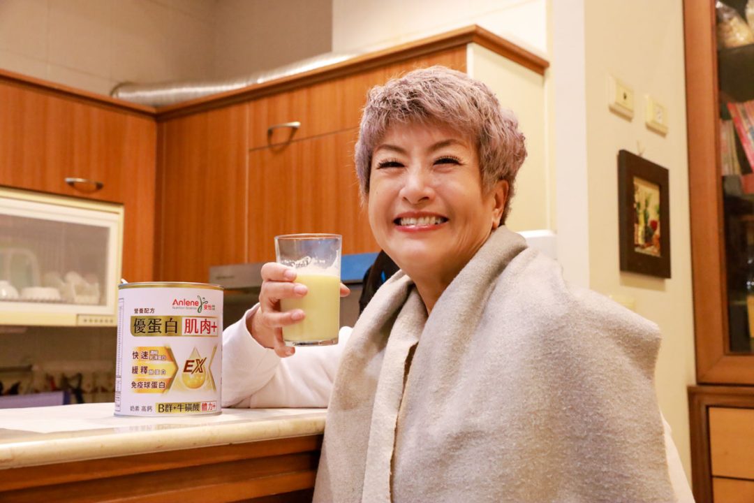我都笑著回:「在家裡喝過安怡優蛋白EX了。」