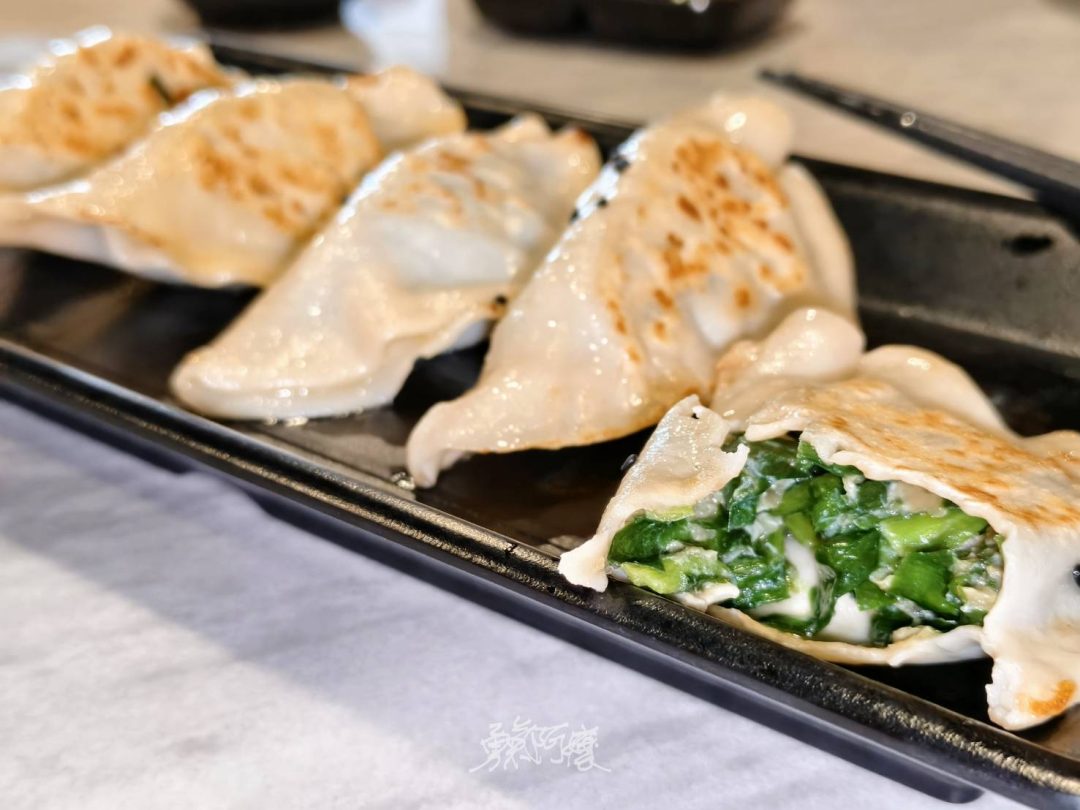 點來一份五顆的老品韭菜鍋貼,餃底酥脆一口咬下竟然很Juicy,又不潮出過量湯汁。